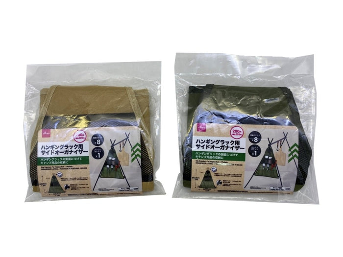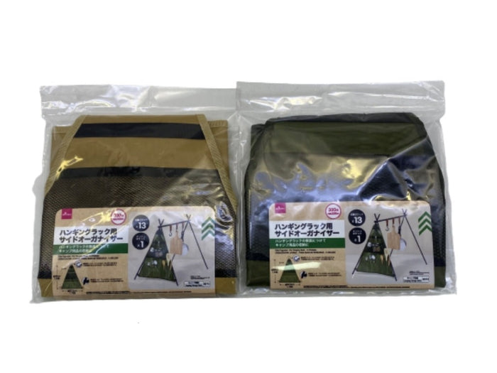 ハンギングラックの脚の間に取り付けるサイドオーガナイザーです。デッドスペースになってしまう脚の間に取り付けることで収納力が増します。